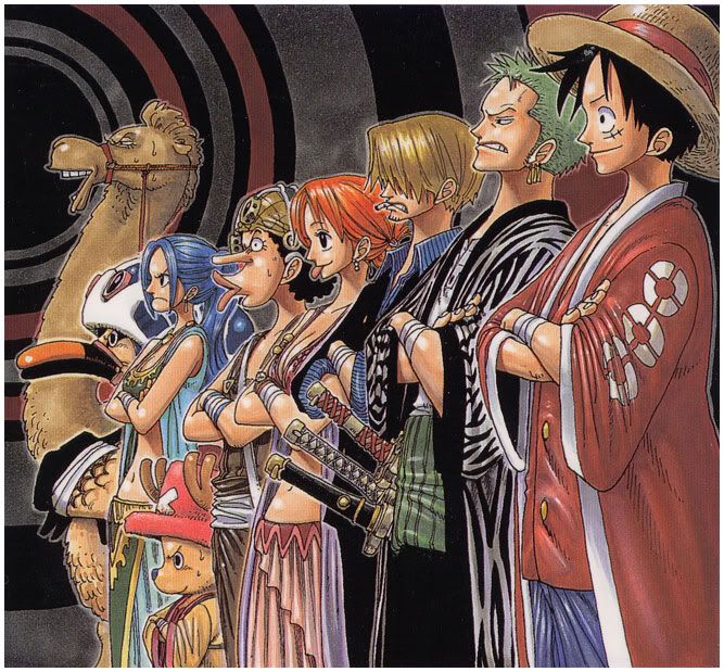 Luffy lãnh đạo nhóm hải tặc Mũ Rơm qua East Blue (Biển Đông) và rồi tiến đến Grand Line. Cậu theo dấu chân của vị vua hải tặc quá cố, Gol D.Roger, chu du từ đảo này sang đảo khác để đến với kho báu vĩ đại One Piece. Mỗi thành viên trong nhóm đều có 1 quá khứ rất đặc biệt và đáng buồn. Ngoài khả năng đặc biệt trong công việc của mình, bất cứ thành viên nào cũng có khả năng chiến đấu rất tốt.
